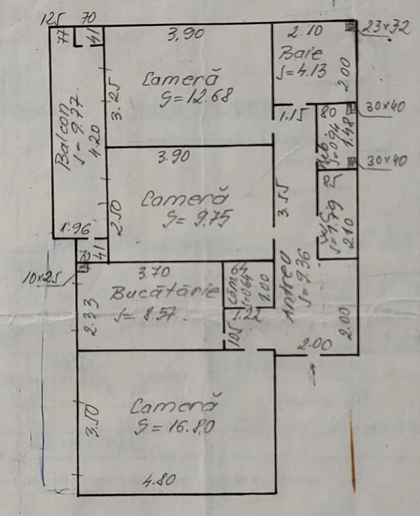 | 3 camere decomandate, 2 bai, 1 bucatarie, 1 hol | 65 mp + balcon 15 mp | |
